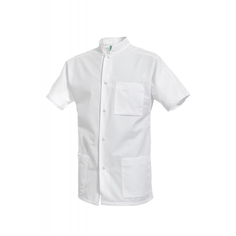Col officier, Manches kimono, Fermeture devant par 5 pressions, Longueur : 75 cm