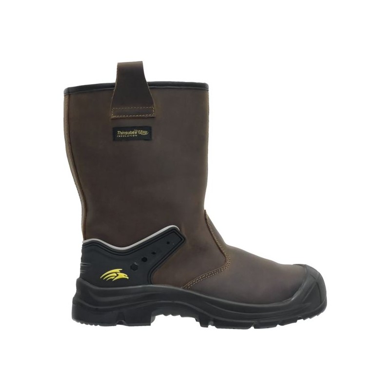 Tige cuir pleine fleur pull-up, hydrofuge. Doublure isotherme en Thinsulate™, garantissant chaleur et confort, même à des températures allant jusque -30 °C. Semelle de propreté en mousse PU 10mm, doublée en tissu antibactérien.
