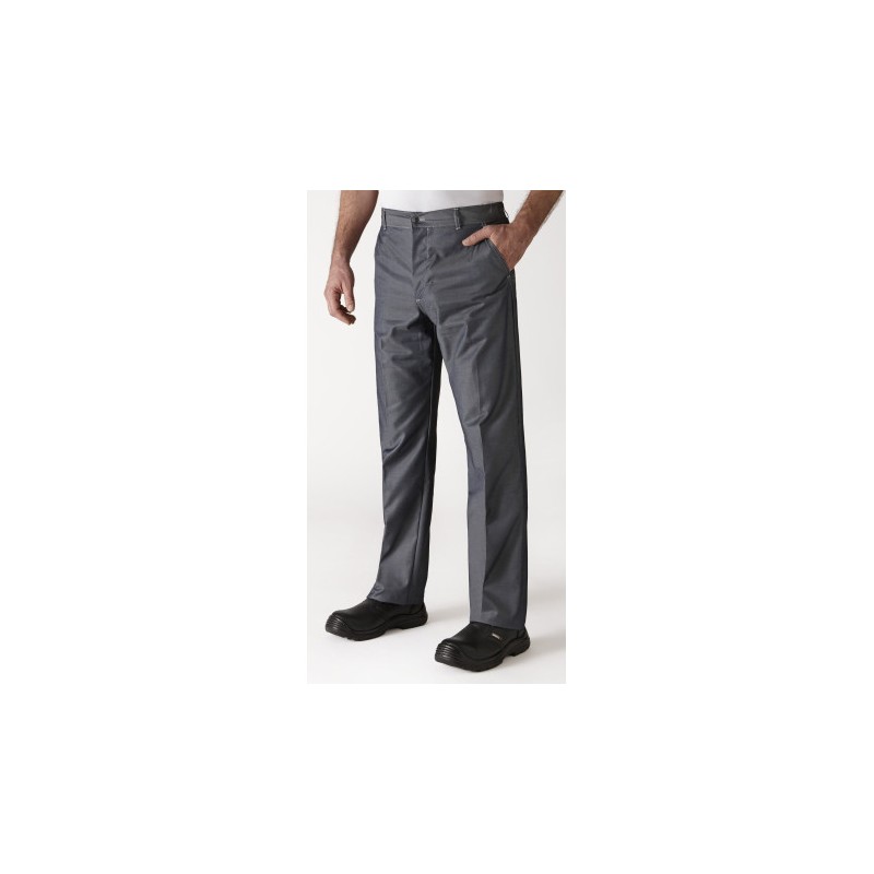 Pantalon cuisine mixte Timeo rayé noir blanc et bleu denim