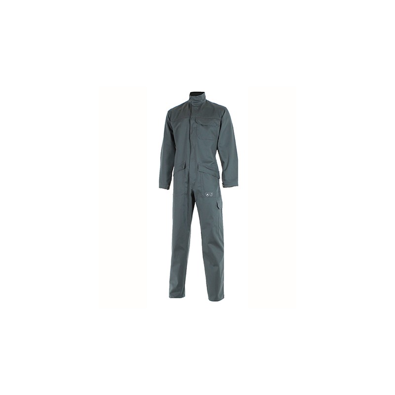 Col montant. Fermeture grippers. Soufflets dos. 1 poche poitrine avec rabat fermé. 2 poches basses avec rabats fermés. Poignets à soufflets fermés par grippers. Élastique dos. 1 poche cuisse, 1 poche mètre et 1 poche dos avec rabats fermés. 1 poche poitrine intérieure fermée. Entrejambe 80 cm + ourlet de 5 cm. Collerette de marquage.